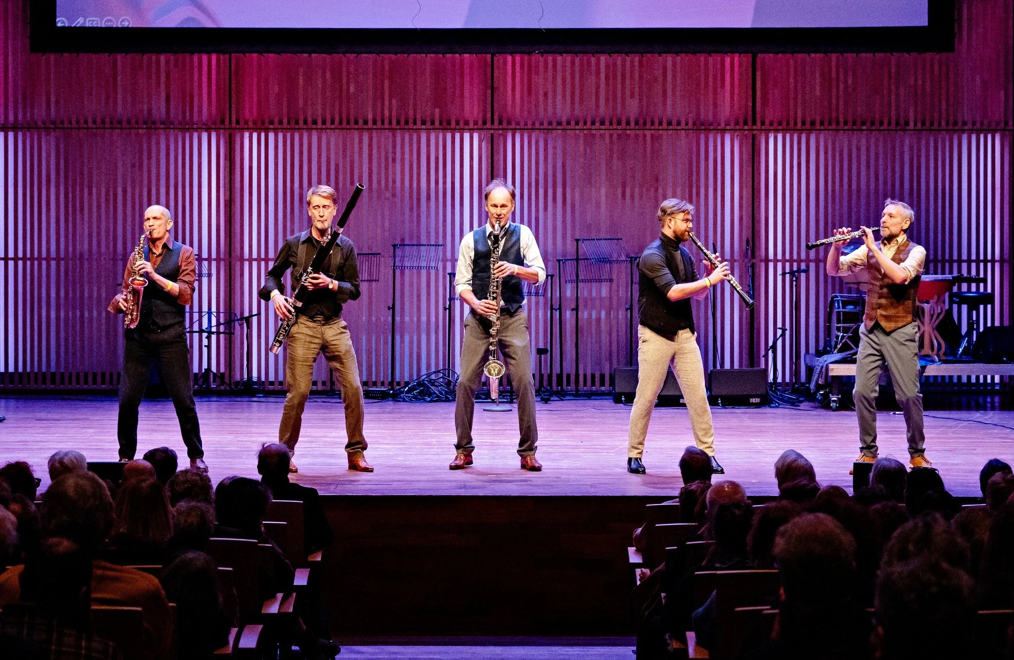Calefax, Oliver Boekhoorn (oboe/cor anglais), Raaf Hekkema (saxophones), Bart De Kater (clarinet) Jelte Althuis (bass clarinet) Alban Wesly (bassoon), touring for Chamber Music New Zealand 17 – 28 September, 2024.