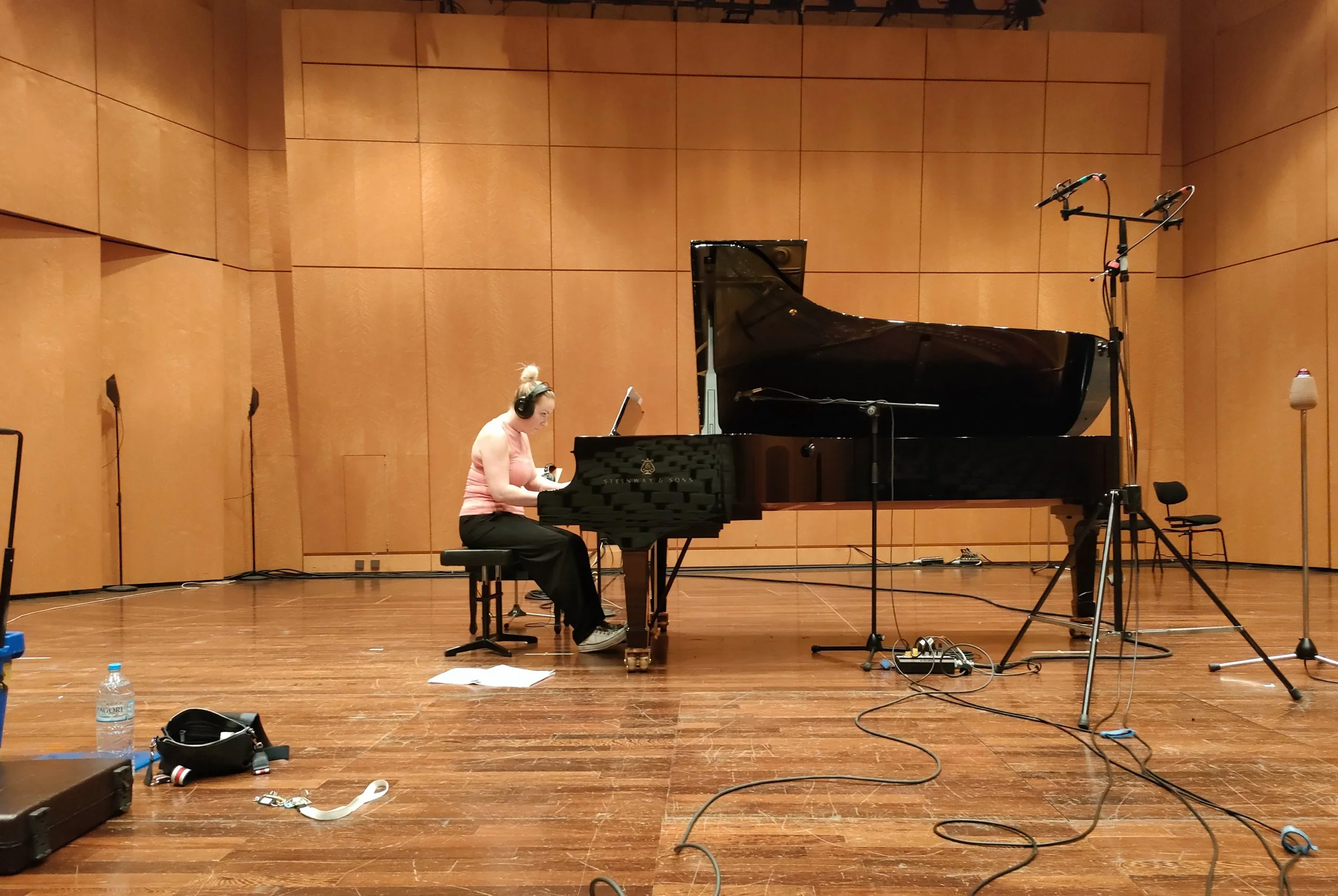For Psathas, the challenge was to translate the magic of six pianists in what Psathas calls “a kind of concerto.” All the important moments across twelve hands had to be reduced into just two and hold their own against the same staggering backing track.