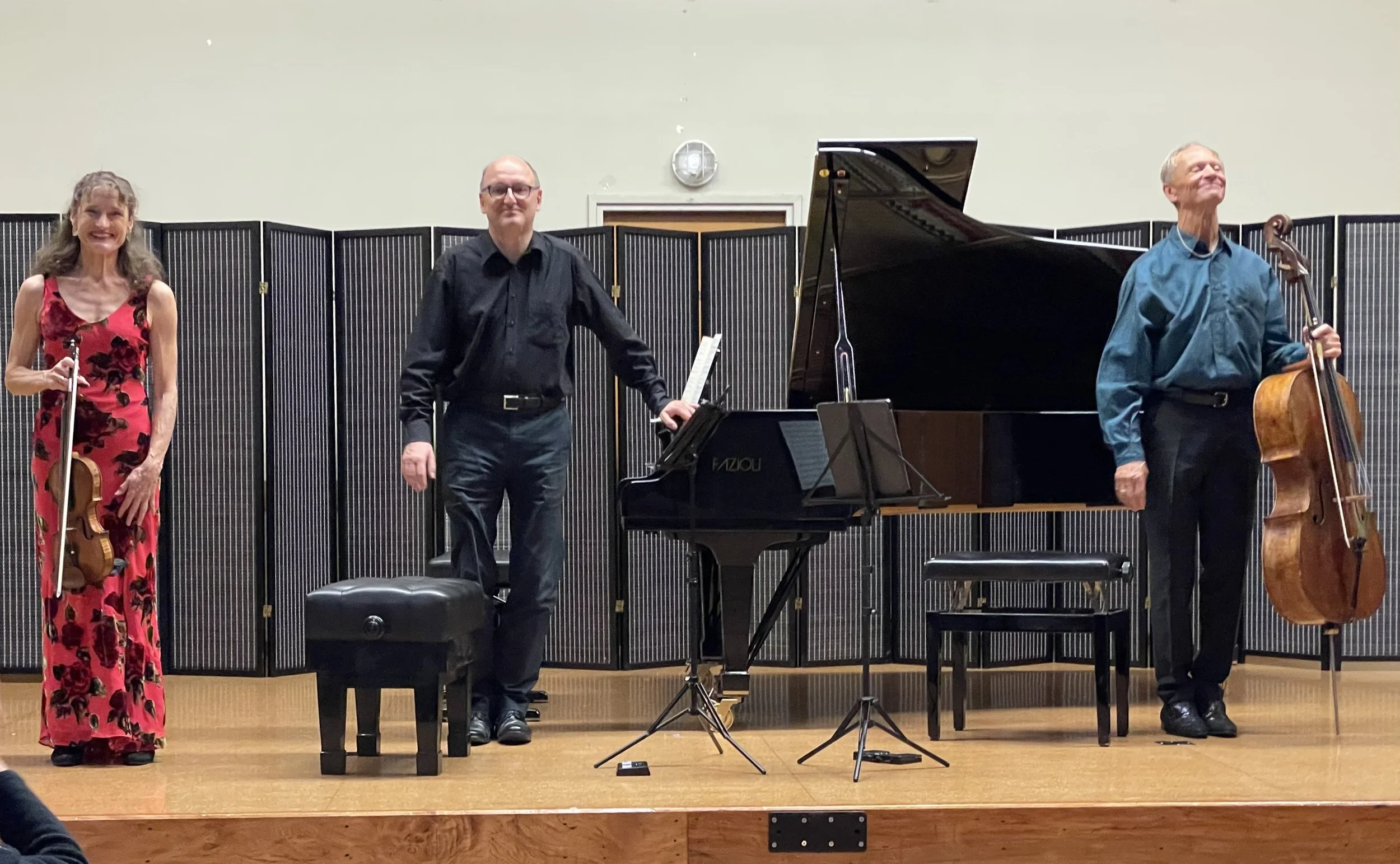 The Korimako Piano Trio acknowledges enthusiastic applause from the Waikanae Music Society audience