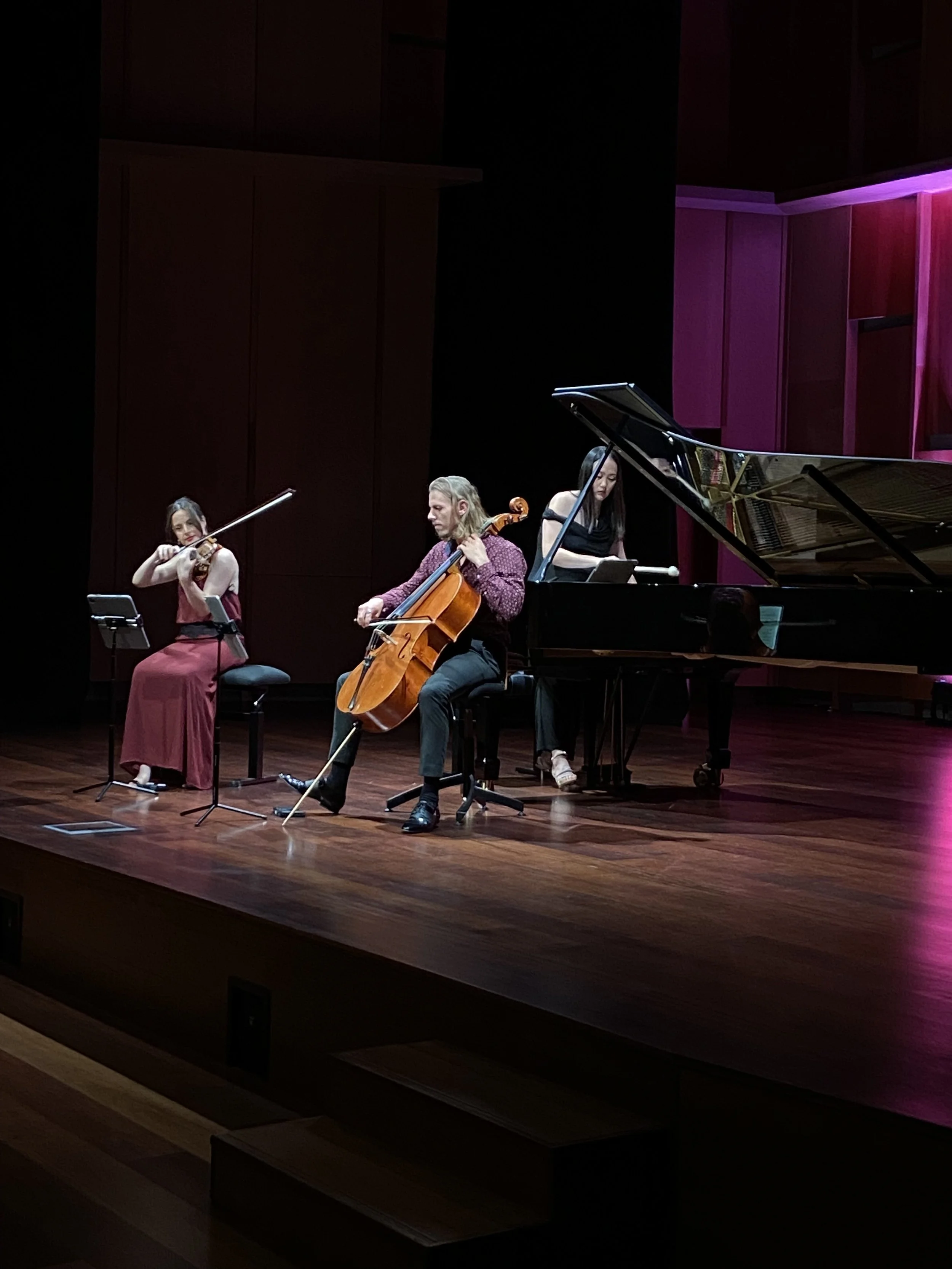 NZTrio performing their “Hypnotique” programme in Christchurch for Christopher’s Classics. (From left) Amalia Hall (violin), Matthias Balzat (cello), Somi Kim (piano).