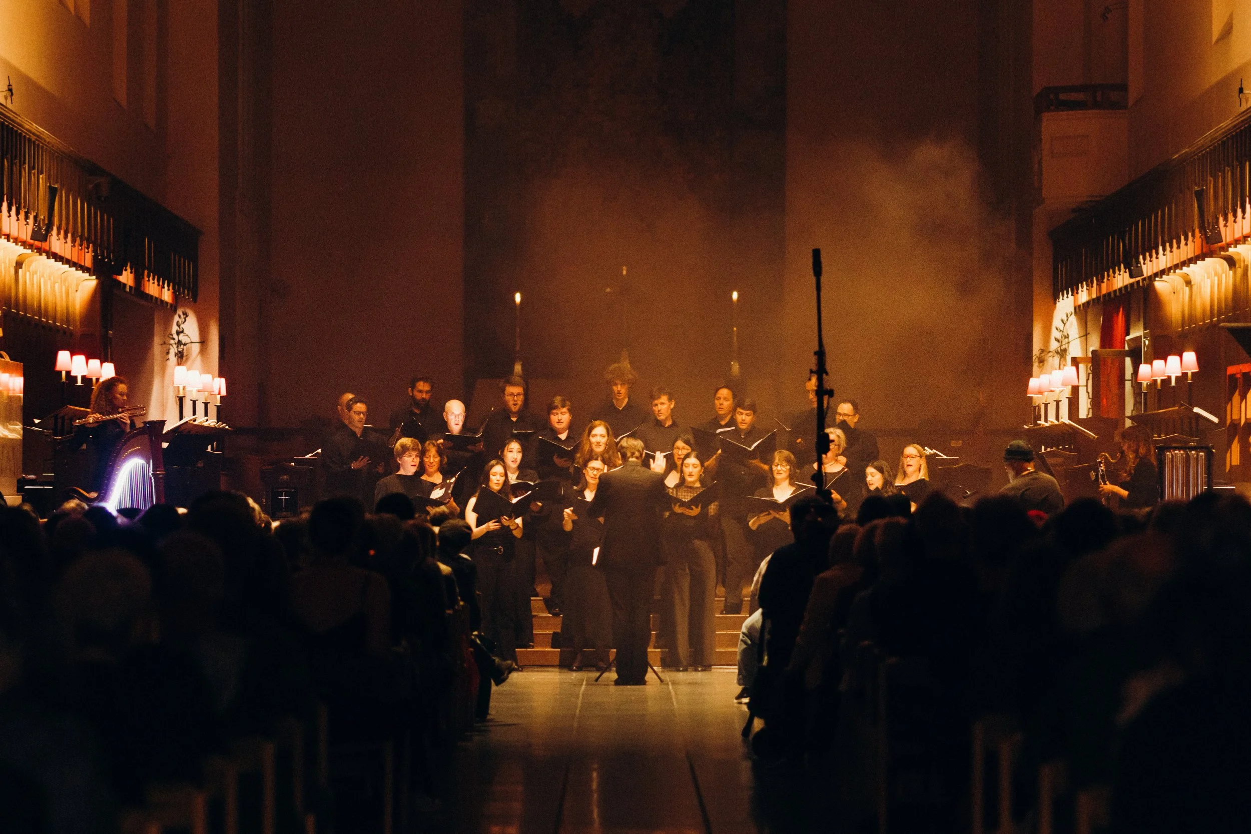 From here the deconstruction of eight of Lassus’s motets began. Norris suggests that the effect is like listening to 16th century Renaissance polyphony “through the haze of a fever-dream.” Adding to the dream-like atmosphere were mists of dry ice, present in the sanctuary at the front of the cathedral since we took our seats and becoming more dense at climactic moments.