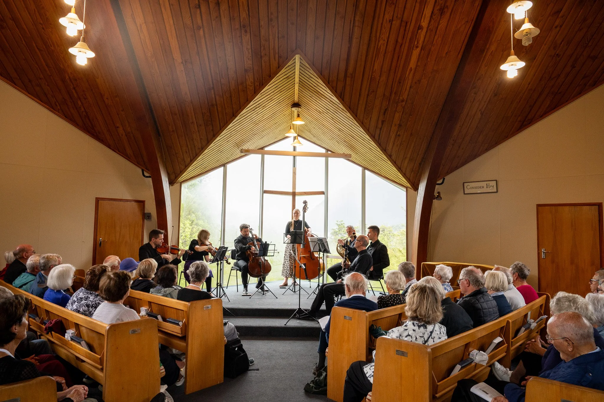 Alongside smaller ensembles, the Adam Festival Orchestra, inaugurated this year and ably led by Clark, combined the three available string quartets and double bassist to present Bach cantata excerpts and a concerto in the ever-popular “Bach by Candlelight” concert and more recent repertoire in other programmes. And the Festival was taken widely into the Nelson community with free programmes around town by the musicians of the Antipodes String Quartet, talented young chamber musicians gaining invaluable concert experience at the Adam.