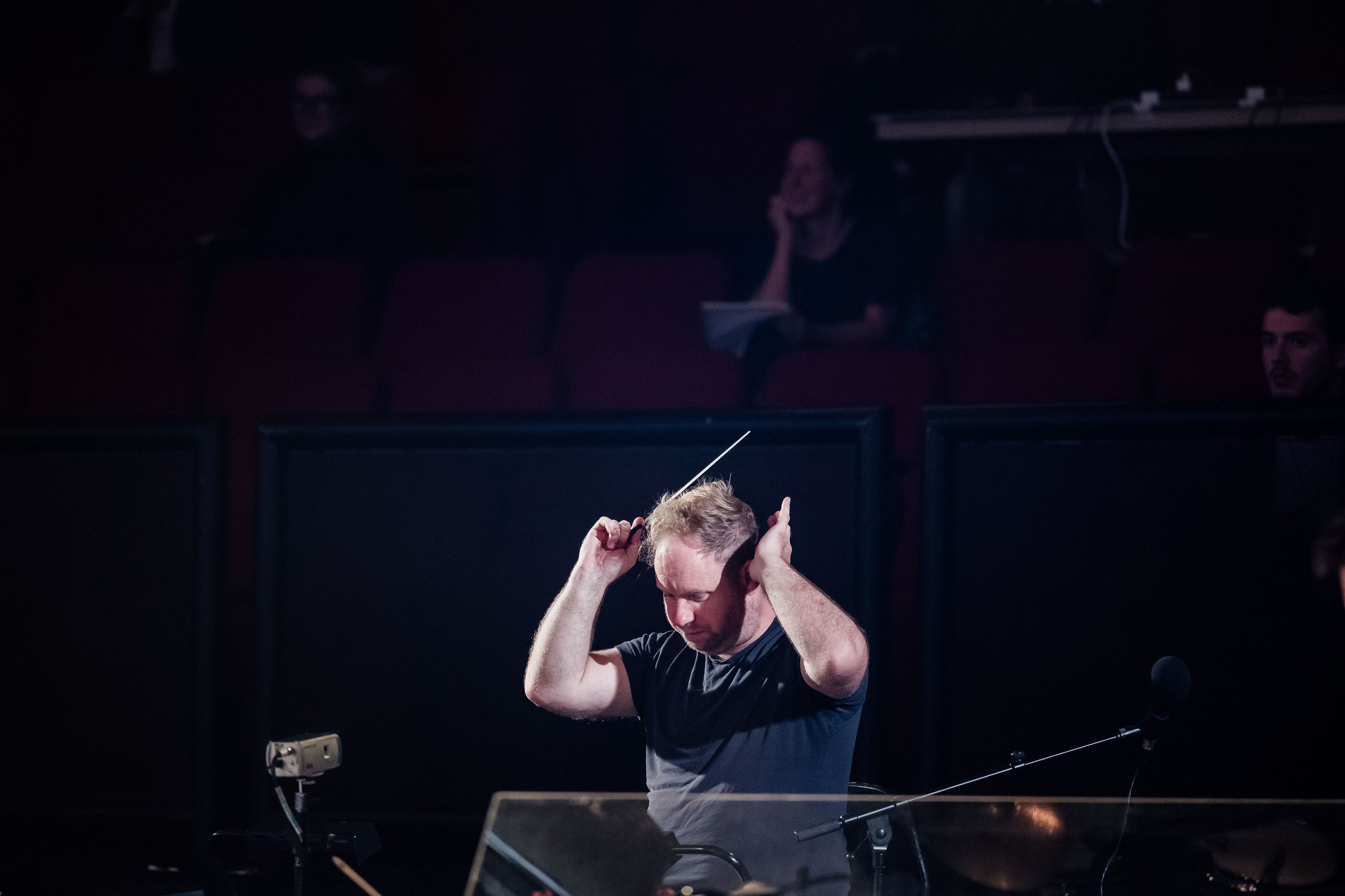 Composer Luke di Somma, conducting his new opera, The Unruly Tourists, in its premiere season in Auckland
